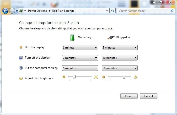O modo “Poupança de energia” baixa muito o consumo de energia à custa do desempenho do sistema. O modo de “Elevado desempenho” ignora todos os sistemas de poupança de energia e põe o sistema a funcionar á velocidade máxima. Embora sejam um bom ponto de partida, se quiser controlar mesmo a forma como o computador gasta energia terá que criar o seu próprio perfil de energia.