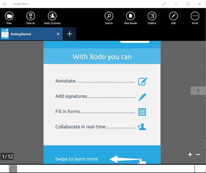 1. Vá até à Windows Store e descarregue a aplicação. Depois de a app descarregar pode encontrá-la escrevendo Xodo na caixa de pesquisa – aparece como Xodo Docs. Clique com o botão direito do rato sobre o resultado correcto e fixe a aplicação o menu ‘Iniciar’ para um acesso mais fácil e rápido. Depois de esta carregar, pode escolher navegar pelos ficheiros PDF existentes ou ir directo a ‘Recent Documents’ para ver os últimos ficheiros que usou. Também pode criar um novo documento através de um ficheiro em branco ou de uma fotografia. Por agora, clique em ‘Getting Started’ para experimentar com um ficheiro de exemplo.