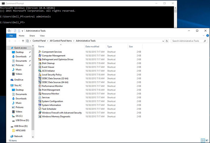 Por exemplo, se quiser abrir a janela das Ferramentas de Administração do Windows escreva ‘control admintools’ e prima a tecla enter.
