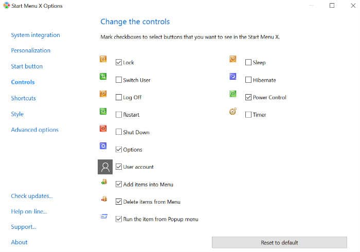 Se escolher a opção ‘Start button’ vai poder mudar o ícone do menu ‘Iniciar’ e escolher entre 17 designs. Em ‘Controls’ pode adicionar mais ícones ao menu, como por exemplo os de Encerrar (Shut Down) ou Reiniciar (Restart). Finalmente, em Shortcuts, vai conseguir criar atalhos de teclas para lançar quinze das acções mais comuns num PC com Windows, entre as quais as várias opções de terminar uma sessão.