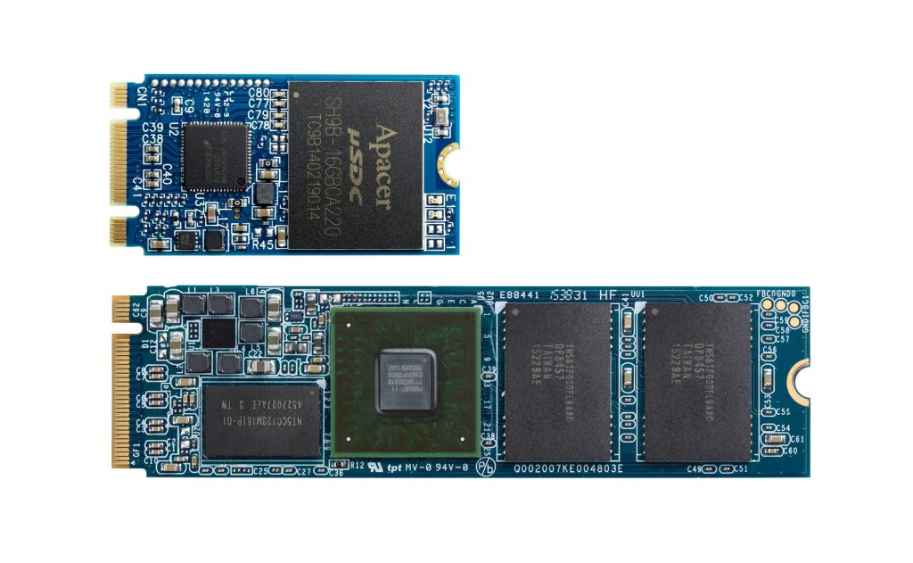 Este último assemelha-se a um módulo de memória RAM, embora os contactos estejam apenas disponíveis numa das faces laterais, sendo estas encaixadas na ligação M.2 existente nas motherboards mais recentes. Esta solução tem a vantagem de usar uma ligação PCI-Express directamente ao processador, garantindo assim uma largura de banda que pode chegar aos 32 Gb/s, um valor significativamente superior aos máximos 6 da interface SATA III.