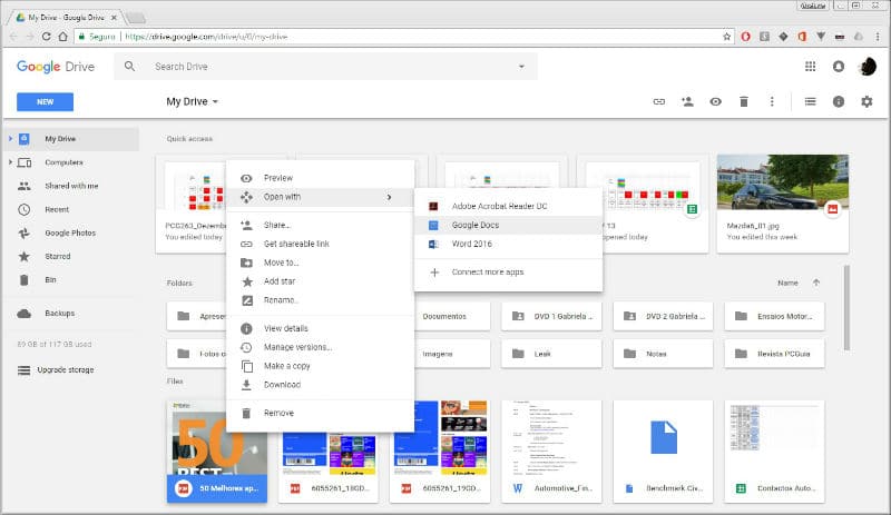 Aquela que será, muito provavelmente, a maneira mais fácil de extrair um ficheiro editável a partir de um PDF será através do Google Drive. Para tal deverá entrar na sua conta Google e carregar o PDF para o seu Drive, bastando arrastar o ficheiro para o browser.