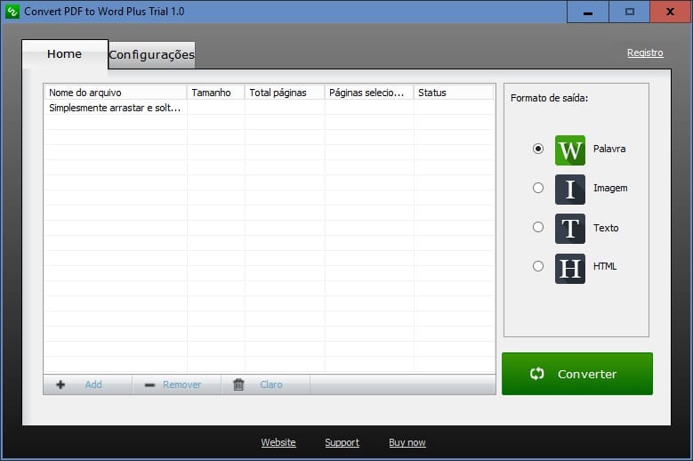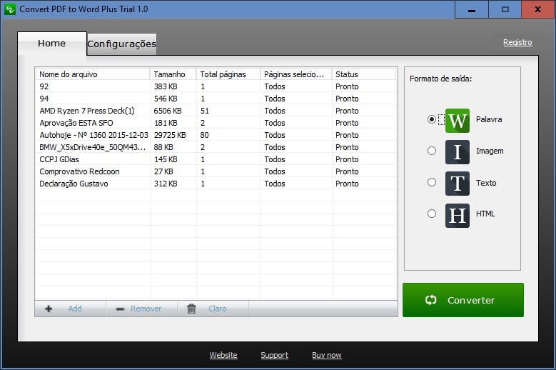 Embora o Foxit seja uma ferramenta eficaz para converter o texto de um PDF num documento editável, o mesmo não se pode dizer caso pretenda converter vários ficheiros PDF ao mesmo tempo. Para tal recomendamos o uso do Convert PDF to Word Plus, que permitirá converter, gratuitamente, ficheiros PDF com um máximo de três páginas cada. Para mais, terá que registar o programa.