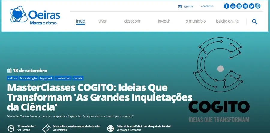 A anteceder o Festival COGITO, evento dedicado à discussão e partilha de “ideias que transformam”, a Câmara Municipal de Oeiras promove um ciclo de MasterClasses intitulado «As Grandes Inquietações da Ciência».