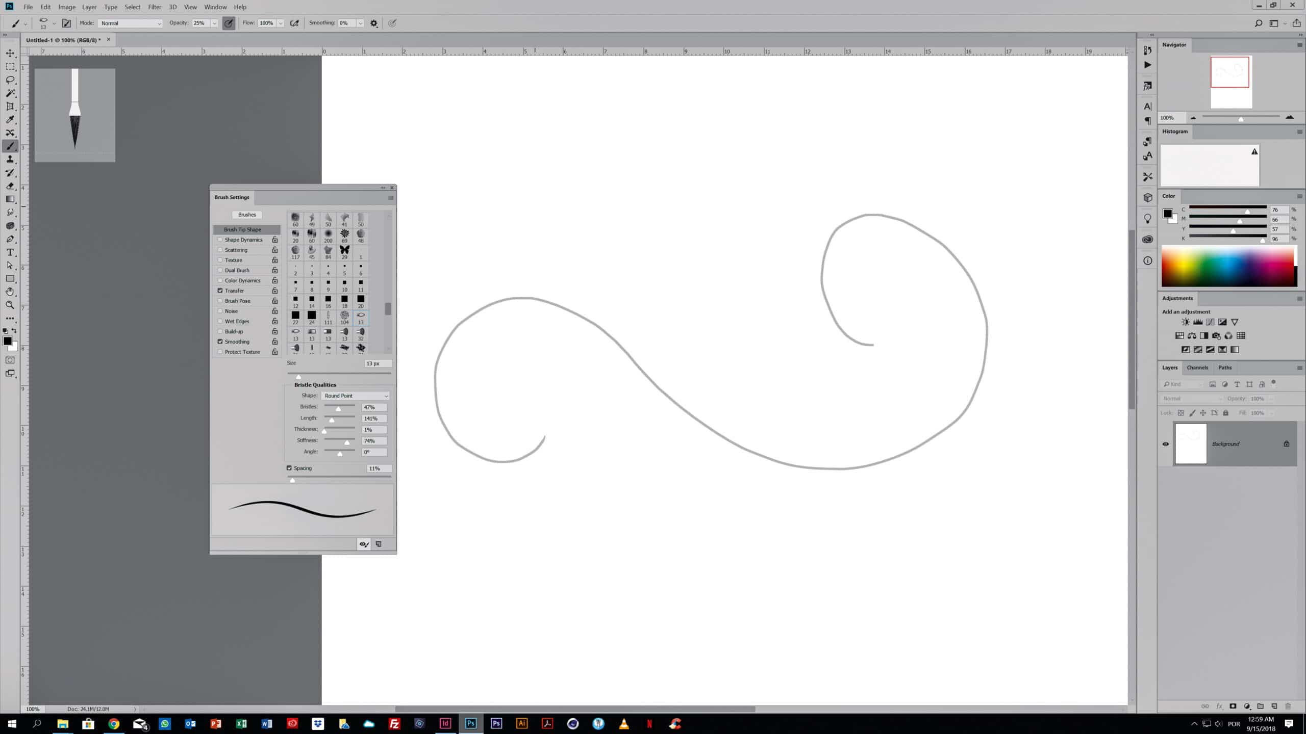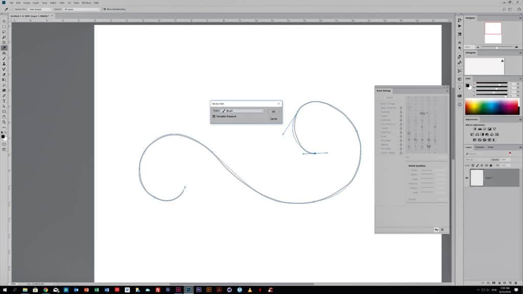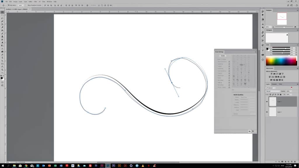 Crie um documento novo (Cmd/Ctrl+N). Depois pegue na ferramenta ‘Brush’ (B). Escolha um pincel de ponta dura e desenhe um esboço da arte de floreado para marcar o caminho.