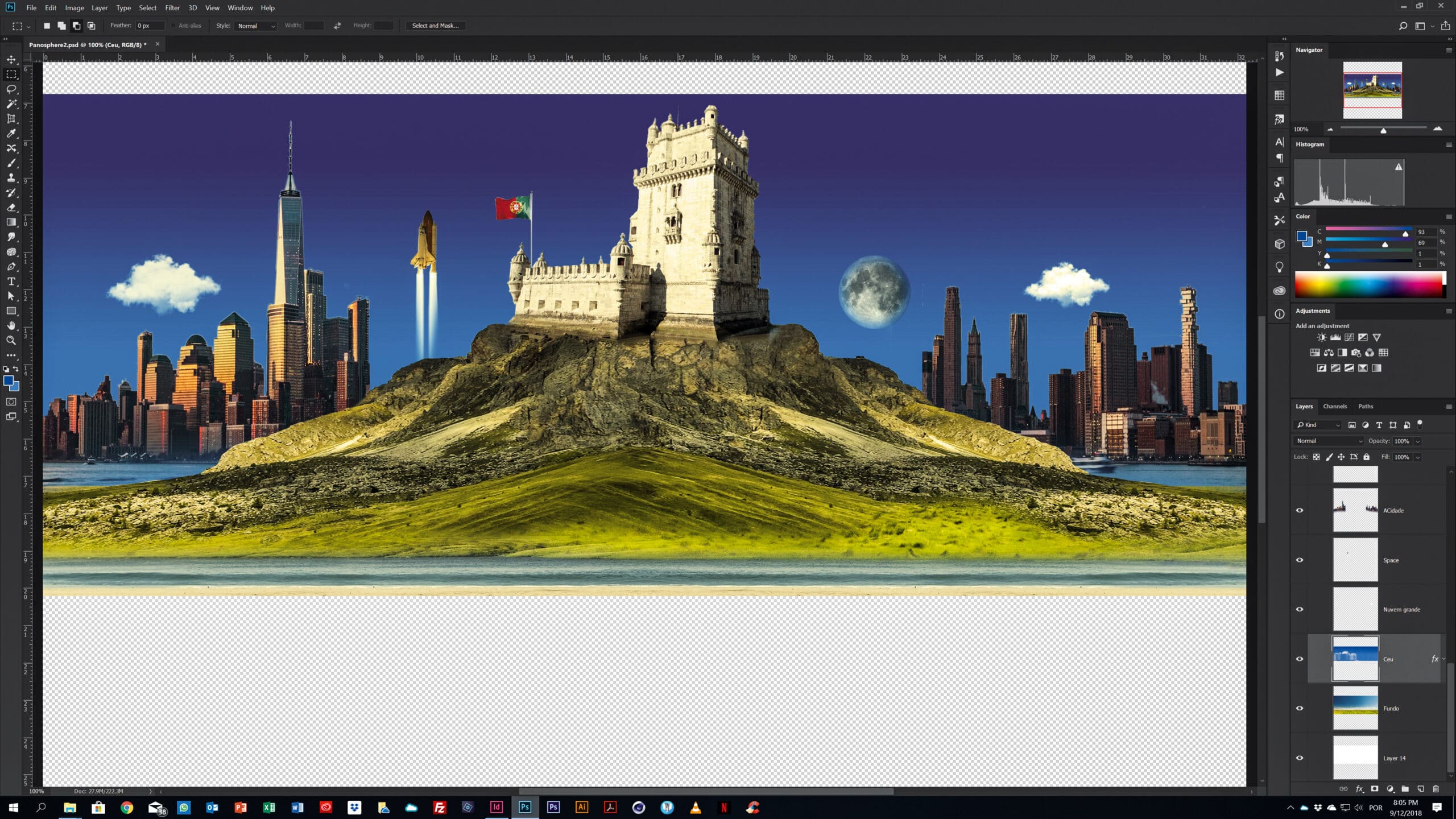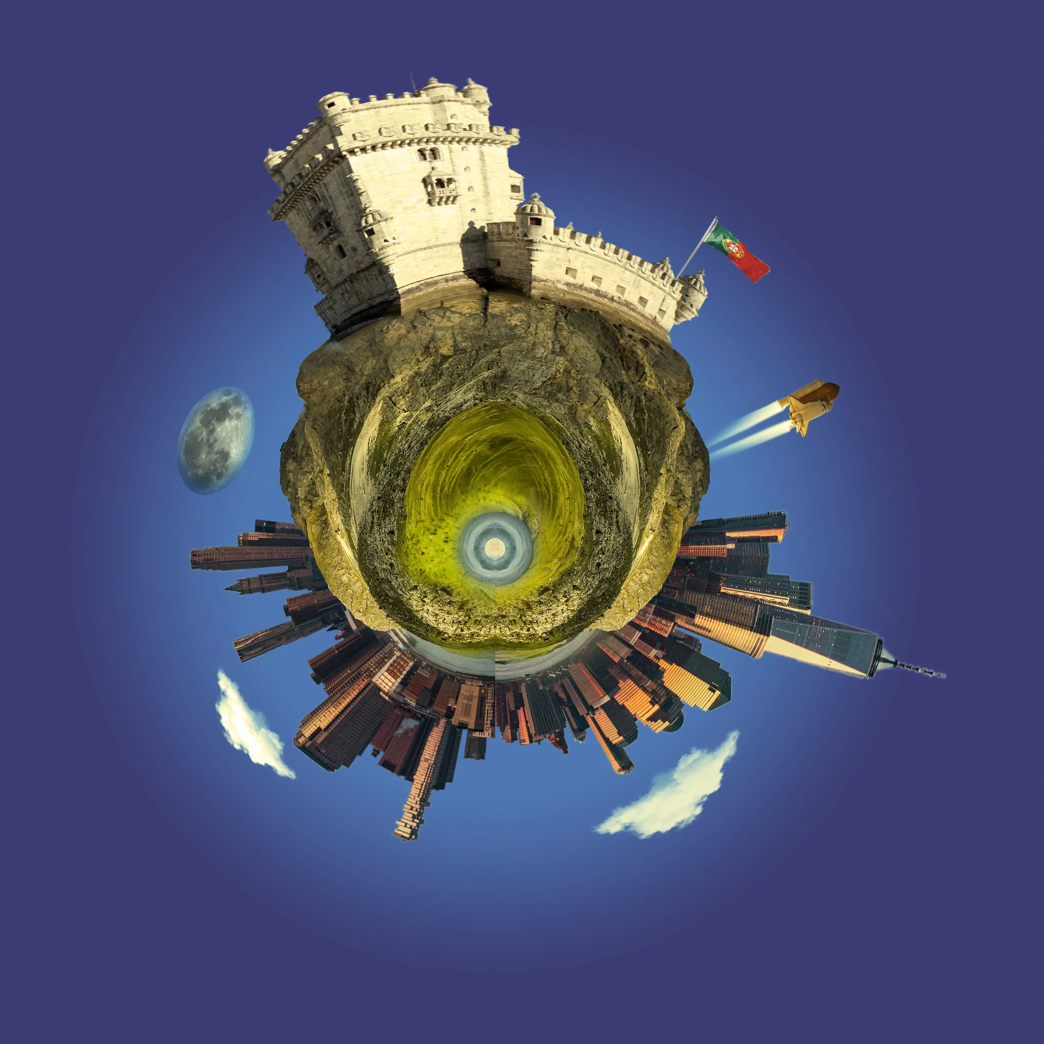 A Torre de Belém é um marco tão notável, famoso por todo o mundo, que é um excelente acrescento à nossa imagem. Usar um edifício icónico pode ser uma ideia excelente, por isso vamos coloca-lo mesmo no centro, onde a acção vai acontecer. Recorte-a o melhor que conseguir e mascare o céu.