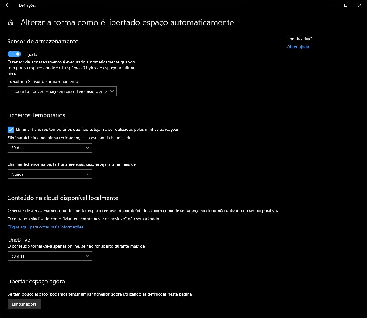 Por baixo de ‘Sensor de armazenamento’ clique em ‘Alterar a forma como é libertado espaço automaticamente’.