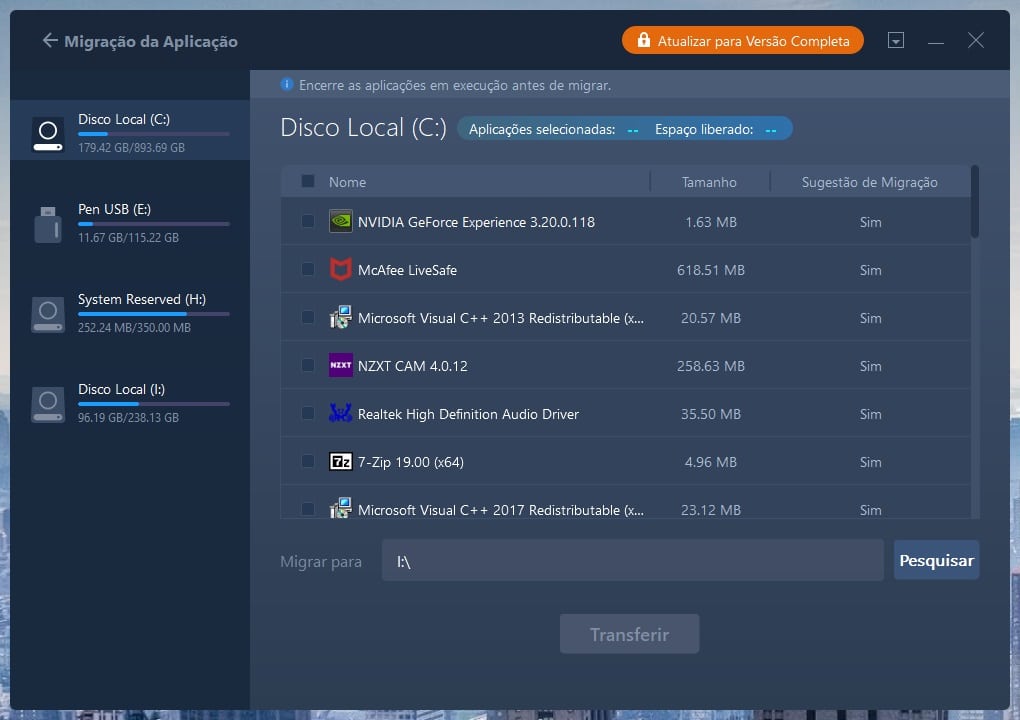 No caso da transferência de aplicações, poderá, à partida, transferir estas mesmo que o sistema operativo seja diferente, ou seja, caso o PC de origem utilize uma versão mais antiga do Windows (Vista, XP e 7) para Windows 7, 8, 8.1 e 10, ou a partir do Windows 8, 8.1 e 10 para o Windows 10. Pode ainda transferir de uma versão do Windows de 32 bits para uma de 64 bits. Contudo, algumas aplicações poderão não funcionar correctamente com versões mais recentes do Windows.