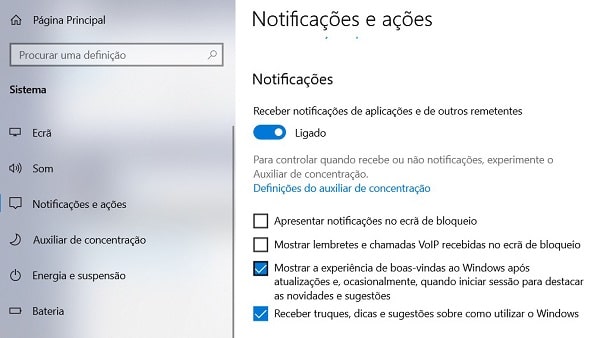 Os alertas do Windows são muito úteis em situações em que está a usar o PC e precisa de responder imediatamente – a um email, por exemplo. Mas quando estiver longe do computador, e o sistema operativo continuar a mostrar estas notificações (mesmo com o ecrã bloqueado, uma pessoa que for a passar pode ver informação sensível que não deve. Para evitar isto, entre no menu das ‘Definições’ do Windows, clique em ‘Sistema’ e depois em ‘Notificações e Ações’. Desactive ‘Apresentar notificações no ecrã de bloqueio’ e ‘Mostrar lembretes e chamadas VoIP recebidas no ecrã de bloqueio’.