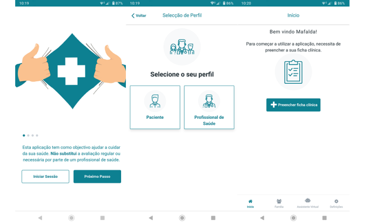 A Todos por Um possibilita que os pacientes introduzam os seus dados de forma a receberem conselhos de acordo com os sintomas e os profissionais de saúde a terem o histórico clínico e sintomas do paciente.