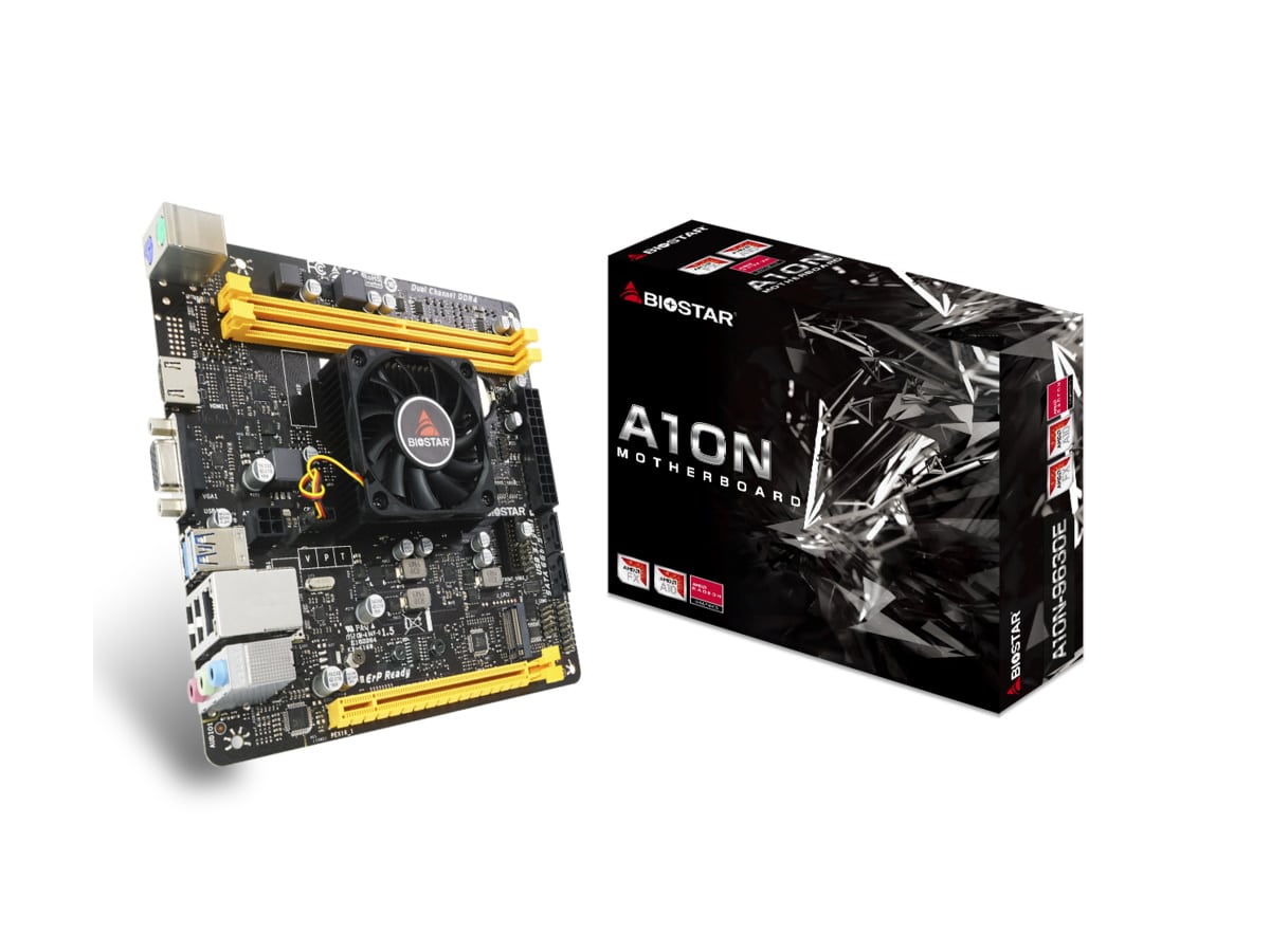 A motherboard Mini-ITX A10N-9630E da Biostar traz um processador AMD A10-9630P com quatro núcleos, gráficos Radeon R5, e duas ranhuras DIMM que incluem suporte para 32GB de memória DDR4-2400 MHz.
