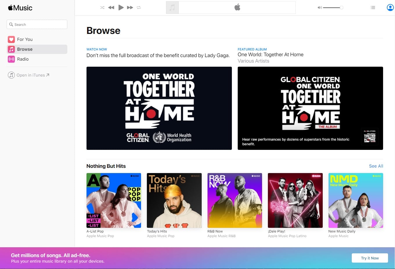 O popular serviço de streaming de música, Apple Music, inicia hoje a fase experimentar que permite ser utilizado a partir de qualquer dispositivo com ligação à internet, dispensando assim o uso de uma aplicação proprietária, como iTunes ou Apple Music. Para tal, basta utilizar um navegador web e aceder à página music.apple.com.