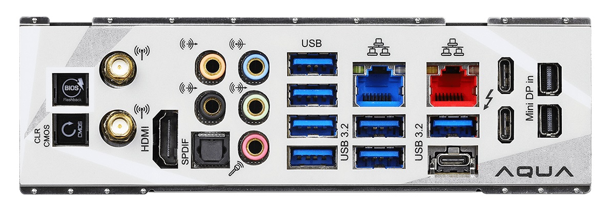 Baseando-se na X570 Aqua, lançada no ano passado, a nova Z490 Aqua destaca-se por diversos elementos, entre eles o distinto bloco de água que permite arrefecer não só o processador como o complexo circuito de alimentação de 16 fases da motherboard. Próximo desse bloco encontra-se um ecrã OLED monocromático, que revela informações do sistema, como estado do arranque, voltagens e temperaturas.