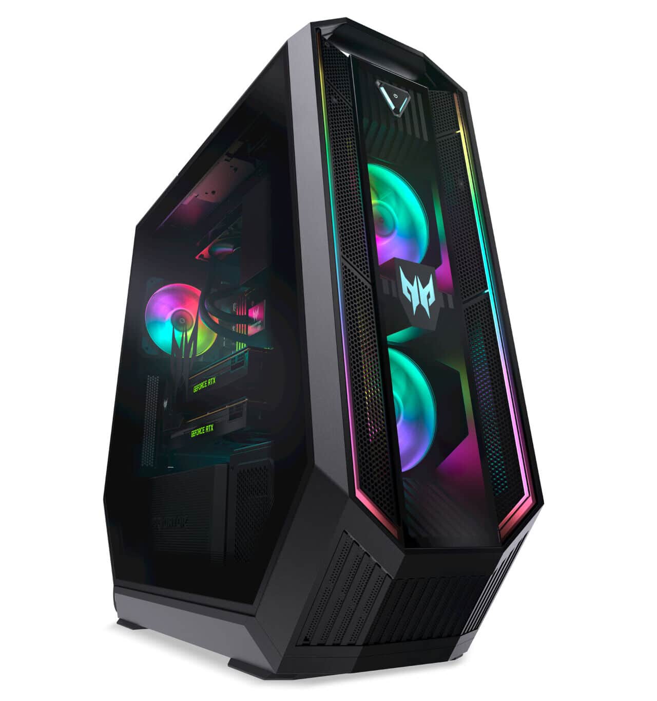 Por fim temos o poderoso Predator Orion 9000, capaz de proporcionar um excelente desempenho, fundamental para utilizadores mais exigentes. A caixa de design único inclui painel lateral de vidro temperado, iluminação ARGB das ventoinhas Acer Predator FrostBlade de 4.7 polegadas e do próprio interior contribuem para um visual surpreendente. Este chassis inclui ainda pegas, rodas e suporte para um headset.