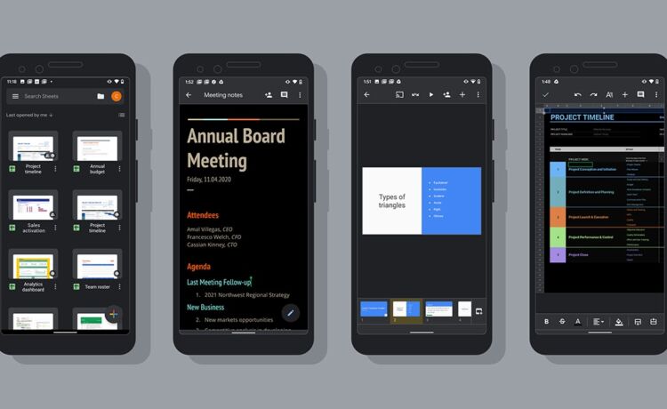 A Google acaba de anunciar que as suas ferramentas de produtividade (Google Docs, Sheets e Slides) passarão a estar disponíveis com um tema escuro, nas suas versões para dispositivos Android. Esta funcionalidade, que será disponibilizada ao longo das próximas duas semanas, estará disponível para qualquer equipamento com Android 10, sendo activado assim que activar o tema escuro no seu dispositivo.