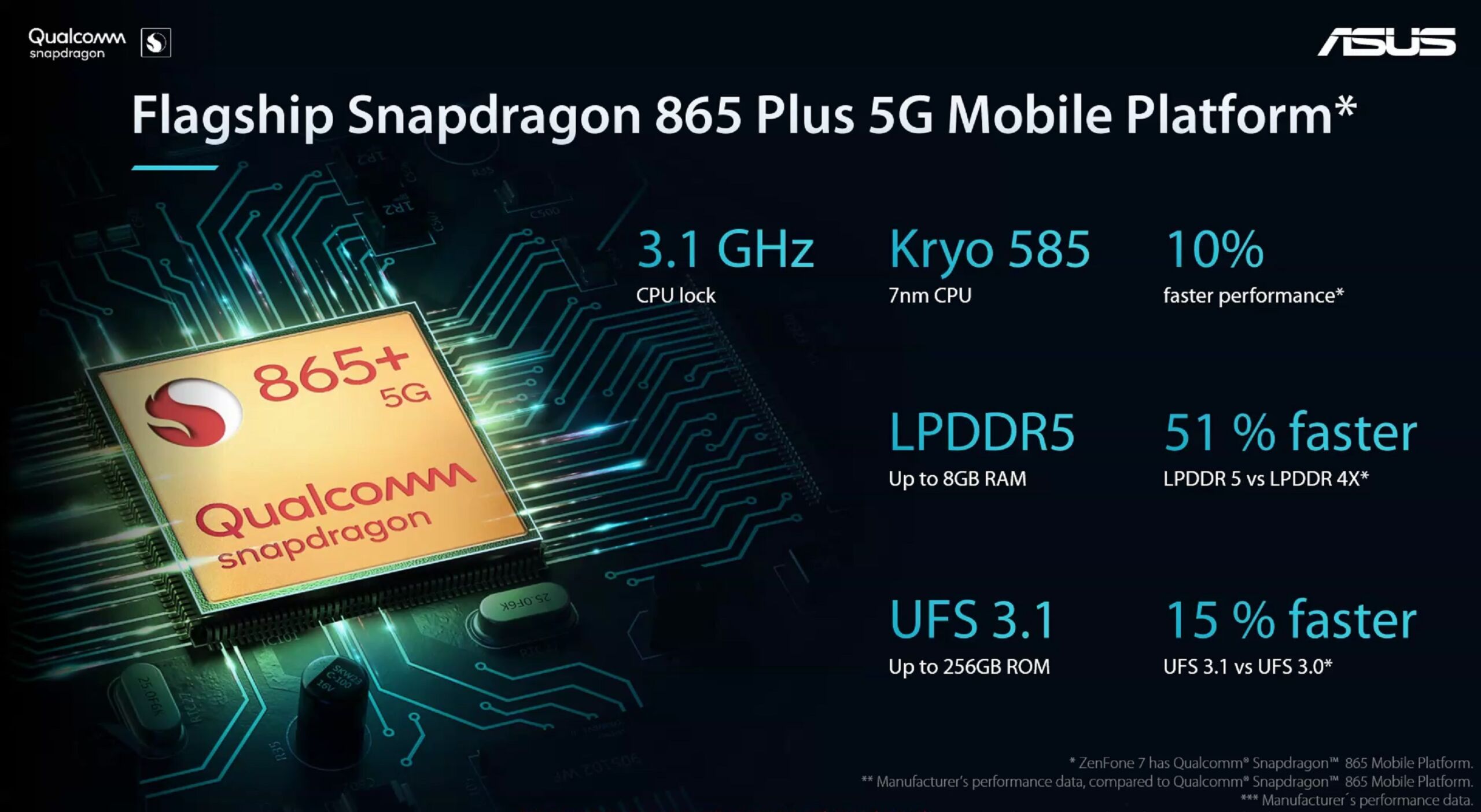 Disponível em duas variantes, estas distinguem-se pelo processador Qualcomm utilizado, ou seja, o ZenFone 7 estará equipado com o Snapdragon 865, e o ZenFone 7 Pro com um Snapdragon 865+.