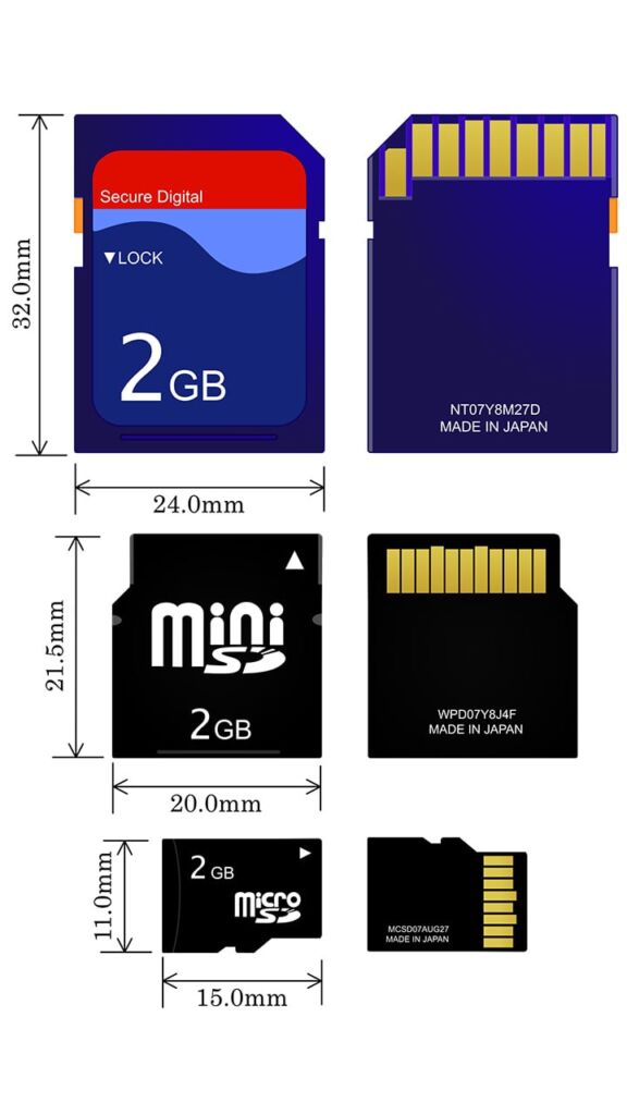 SD ou SDSC (Secure Digital Standard Capacity): 2 GB de capacidade máxima