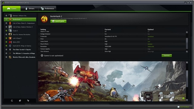 Claro que algumas definições consomem mais recursos que outras, como por exemplo a qualidade das sombras têm um grande impacto no desempenho, mesmo que não se notem muito na qualidade geral dos gráficos. É aqui que entram ferramentas como a GeForce Experience da Nvidia. Este programa procura os jogos que estão instalados no seu computador, compara-os com um índice de desempenho e depois sugere as melhores definições gráficas possíveis para manter um equilíbrio entre o desempenho e a qualidade da imagem. Depois, o programa edita directamente a configuração do jogo para as aplicar sem que tenha de andar a navegar pelos menus.