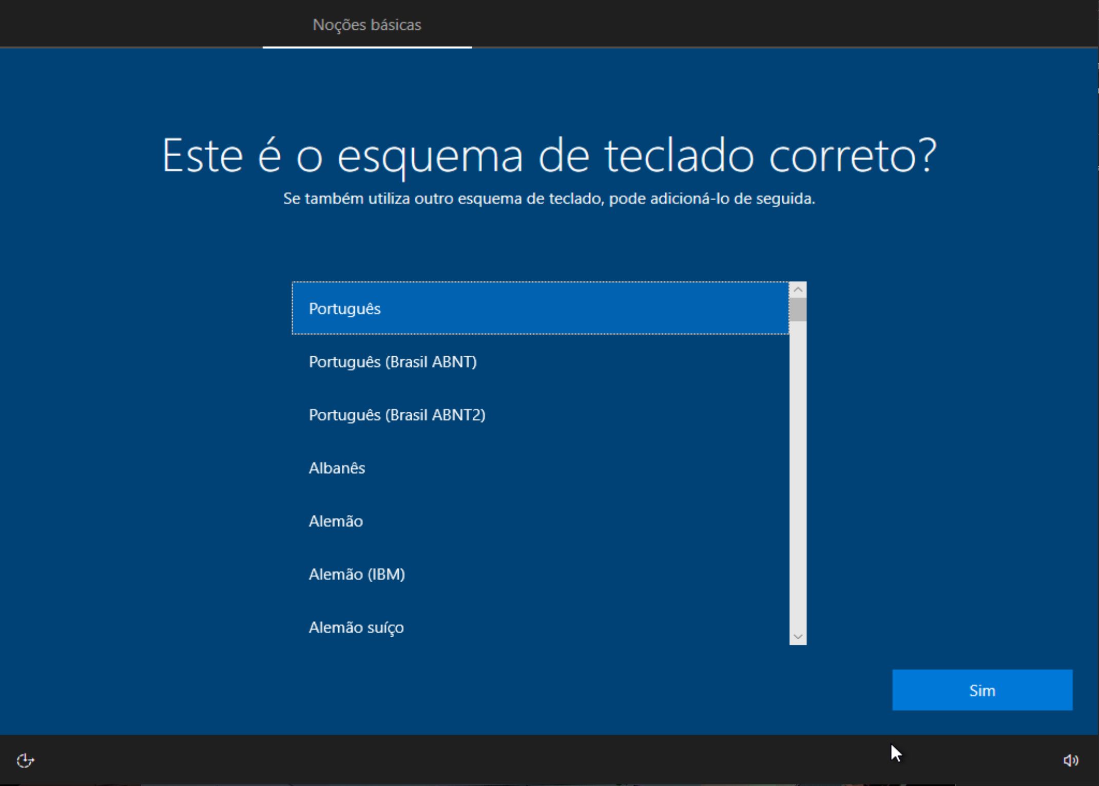 Seleccione o idioma do teclado e clique em ‘Sim’.