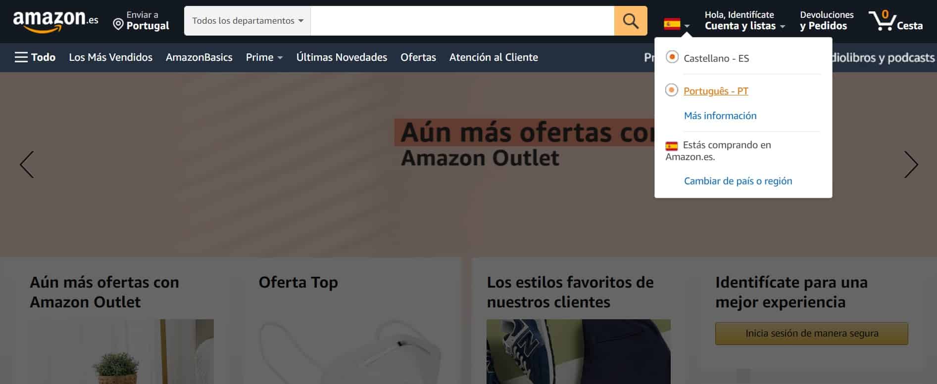 Embora ainda sem ter presença em Portugal, a mais famosa loja online do mundo já está disponível em Português, através da alteração do idioma na página espanhola da Amazon. Ao optar pelo português, a página principal da loja revela um banner a dar as boas-vindas à Amazon em Português, bom a bandeira, as cores da bandeira e vários monumentos nacionais.