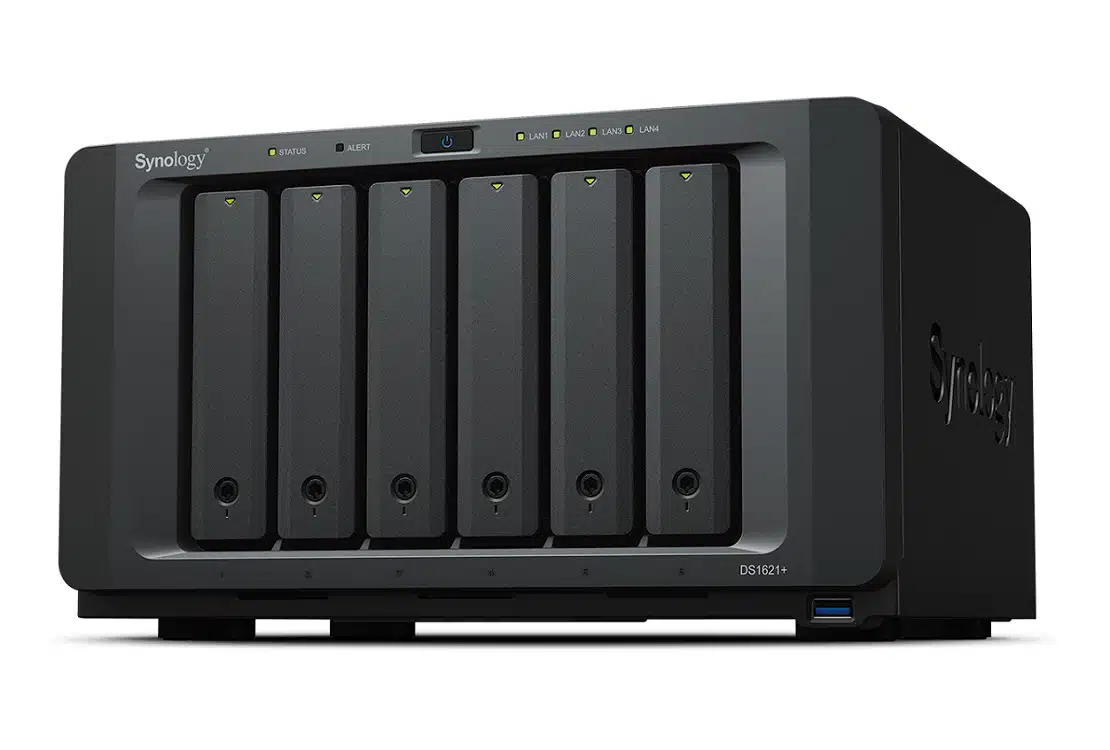A resposta é: o novo NAS DS1521+ da Synology. Além de tudo isto, existem ainda três entradas USB 3 e duas eSATA para expandir mais a já de si gigantesca capacidade de armazenamento. Para ligar à rede local, este NAS tem quatro entradas RJ-45 cada uma com 1 Gbps de largura de banda disponível. O NAS veio com dois discos de 16 TB de capacidade para efeitos de teste, mas quando são adquiridos não trazem qualquer disco. Disponível está tradicional partilha de armazenamento compatível com sistemas operativos Windows, Linux e MacOS. Tem também um servidor FTP e pode ser configurado como uma cloud privada, para acedermos a partir de qualquer parte do mundo, bastando ter acesso à Internet.