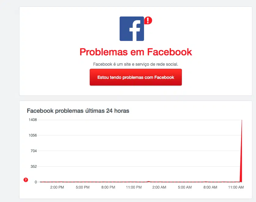 No site https://downdetector.pt é possível ver que os utilizadores estão a reportar centenas de problemas de acesso: desde as 11 horas, já foram marcados neste site mais de 1400 ocorrências no Facebook.