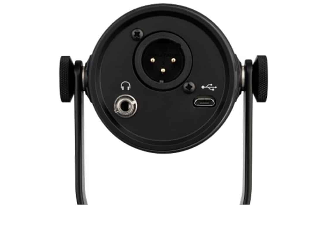 Assim que o tira de dentro da caixa, a primeira coisa que percebe logo é o peso que MV7 tem e que transmite uma impressão de solidez a toda a prova. Na parte de trás do microfone estão três entradas: uma microUSB, uma XLR e uma entrada jack para ligar um par de auscultadores. Na parte da frente, está uma pequena barra sensível ao toque, que serve para controlar o volume e desligar o microfone.