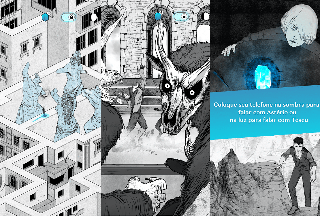 Ponha o smartphone ao sol para falar com Teseus ou à sombra para falar com Astério já que a app usa a câmara frontal do telefone para detectar a existência de luz no ambiente. Mas tenha em atenção que quanto mais ajuda um deles, mais o outro se perde no labirinto.