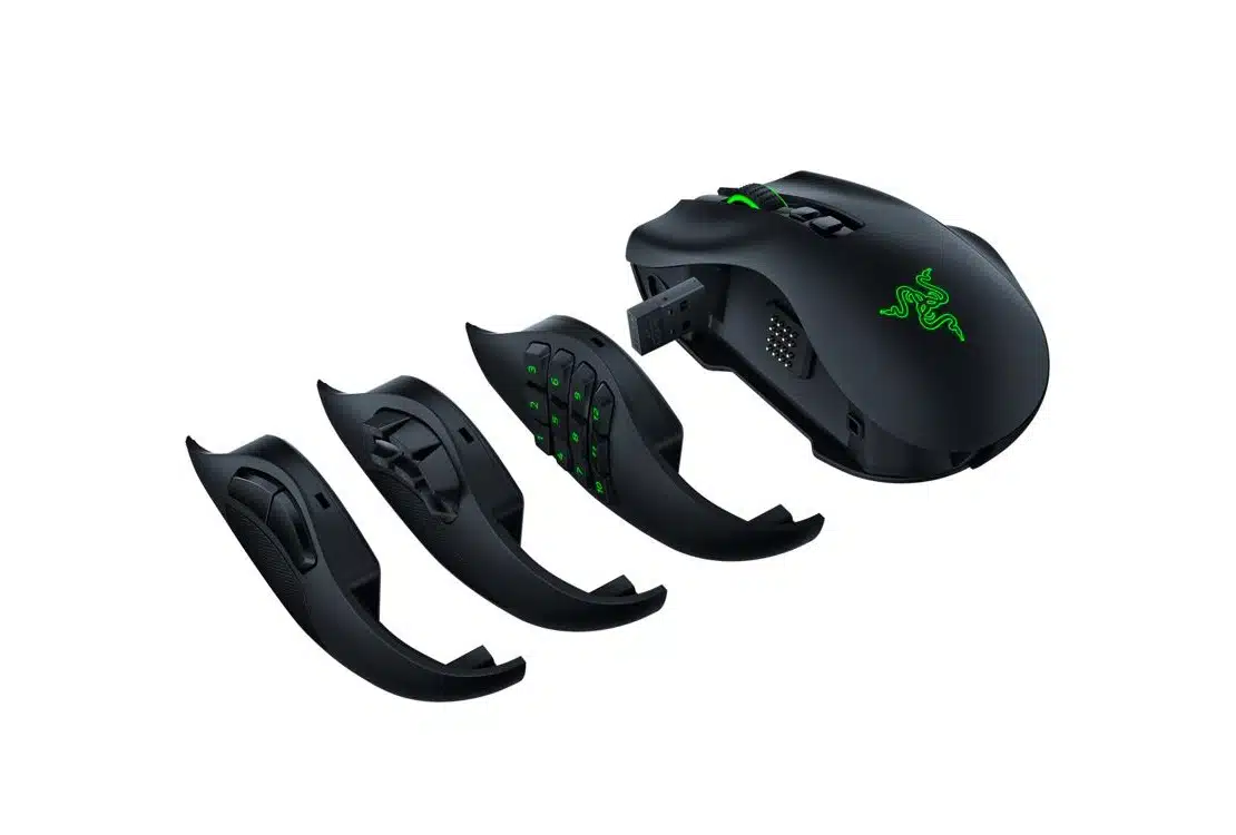 O Naga Pro é um rato destro com três placas/peças diferentes que podemos usar do lado esquerdo do rato: uma com dois botões para FPS simples, outra com seis para MOBA ou Battle Royale, e uma com doze para MMO. Cada uma destas peças botões pode ter uma tarefa diferente, adaptando o rato a todo o tipo de jogos ou softwares, caso seja esse o objectivo. Para o lado direito não temos escolha: há apenas um apoio para o mindinho que nos ajuda também a movimentar o rato com mais facilidade.