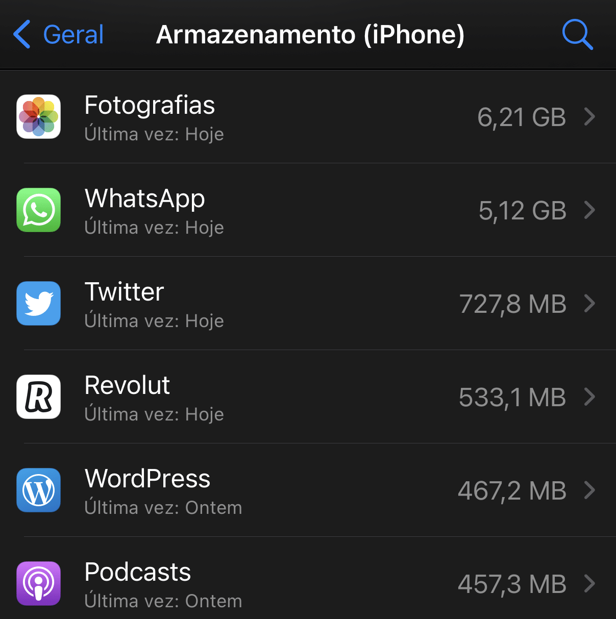 4 – Reiniciar o iPhone e limpar a cache de algumas apps deu-nos alguma margem de manobra, mas é possível ir um pouco mais longe. Na área ‘Armazenamento (iPhone)’ estão todas as aplicações instaladas e é possível ver quanto estão a ocupar. Se tocar em qualquer uma delas, pode ver o espaço ocupado pelos ‘Documentos e dados’, além do tamanho da própria app. Nesta área, podia haver forma de apagar estes documentos e dados, como se fosse um reset à app, mas isto não é possível no iOS.