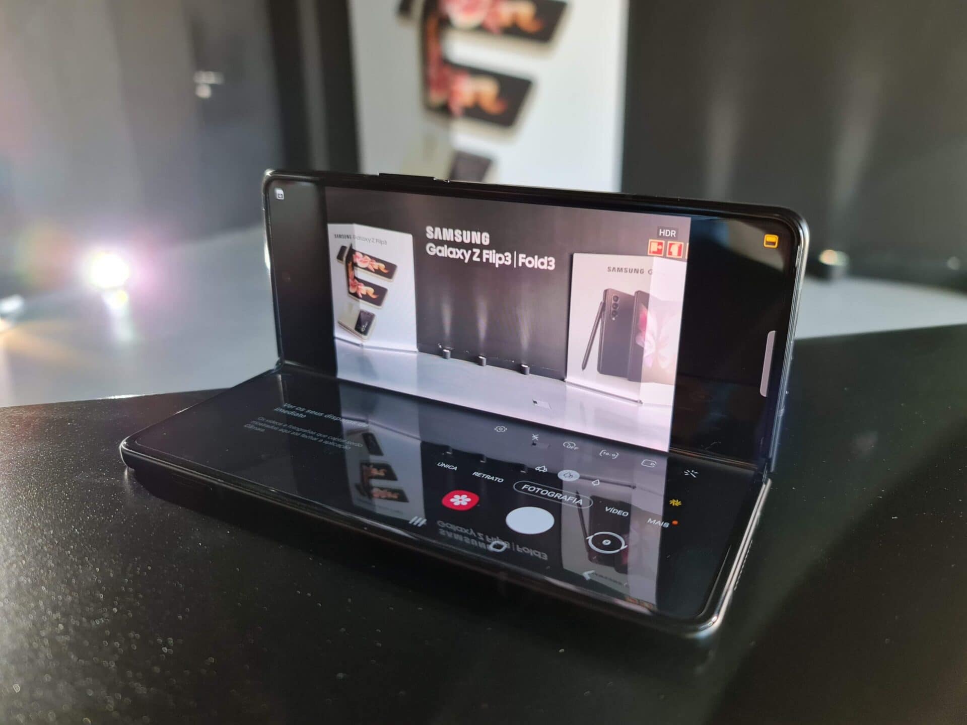 Recorrendo a uma resolução de apenas 4 MP, esta provou ser mais do que suficiente para garantir uma imagem de boa qualidade para videochamadas, conforme pudemos comprovar. Atrás encontrará um sistema de três sensores de 12 MP cada (grande angular, ultra grande angular e teleobjectiva), e um sensor frontal de 10 MP no ecrã externo.