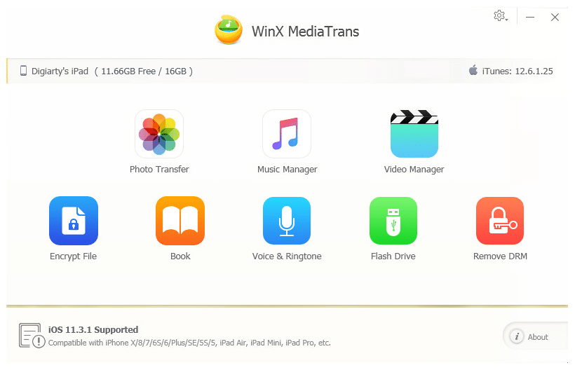 Neste caso, não tem de contar com o iTunes, na verdade, aqui vai encontrar muitas opções alternativas mais convenientes. Entre estas alternativas encontrará o WinX MediaTrans, a melhor opção. Apresenta uma interface de utilizador intuitiva, limpa, muito limitada, organizada, fácil de entender e de usar, que funciona de forma muito eficiente.