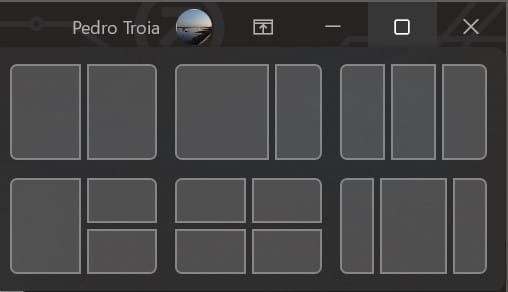 Tal como acontecia no Windows 10, pode arrastar uma janela aberta para um dos lados do ecrã para que ocupe exactamente metade da área disponível e depois pode colocar outra janela no espaço livre. No Windows 11, a Microsoft ampliou esta funcionalidade. Se levar o apontador do rato para junto de botão de maximização que está no canto superior direito das janelas (ou se premir a combinação de teclas Windows+Z) pode escolher de entre um conjunto de esquemas de organizações automáticas para as janelas. As organizações disponíveis dependem do tamanho do ecrã.