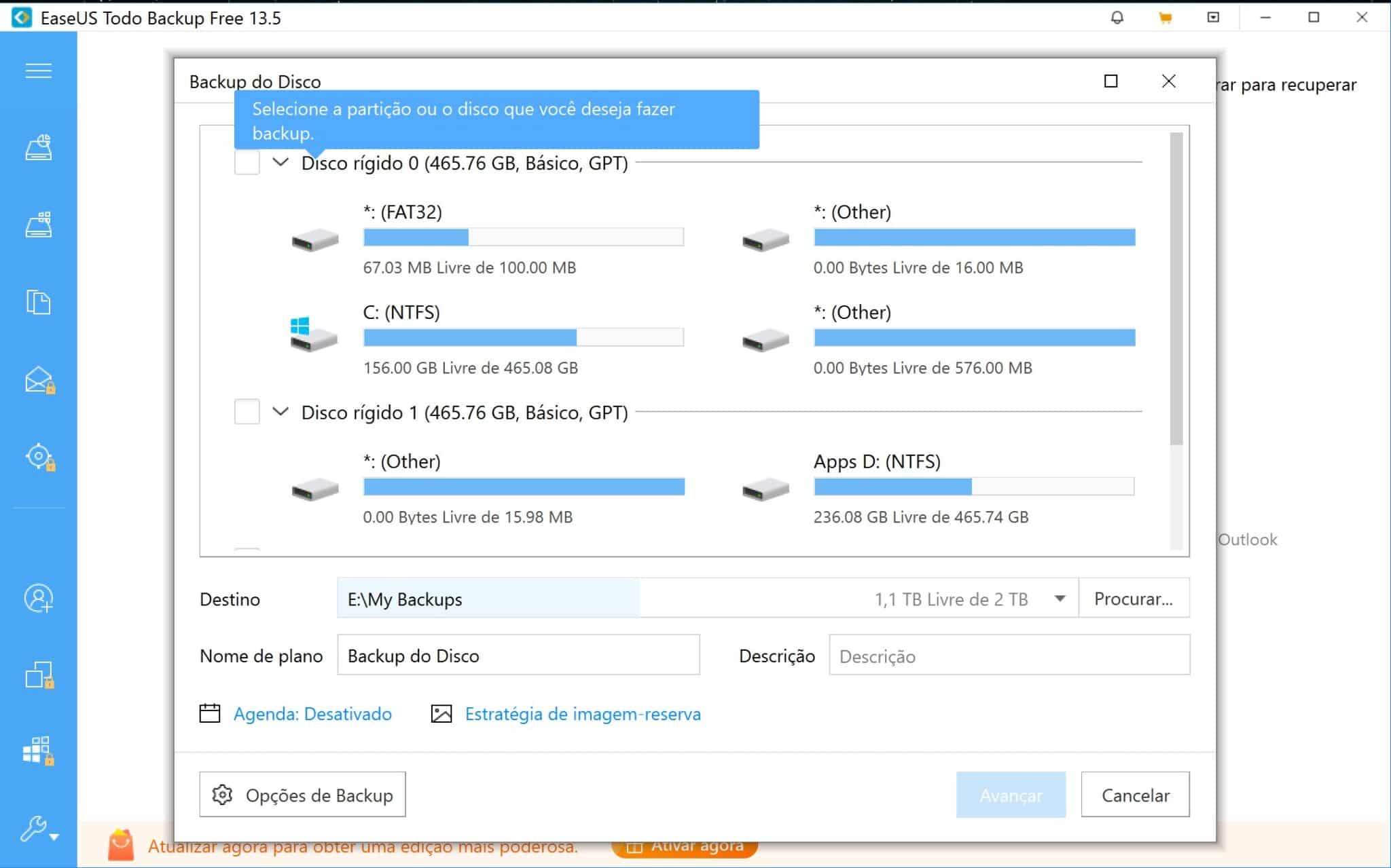 Neste caso vamos usar o EaseUS Todo Backup, mas também pode usar outros programas como Active @ Disk Image, Clonezilla ou Macrium Reflect.