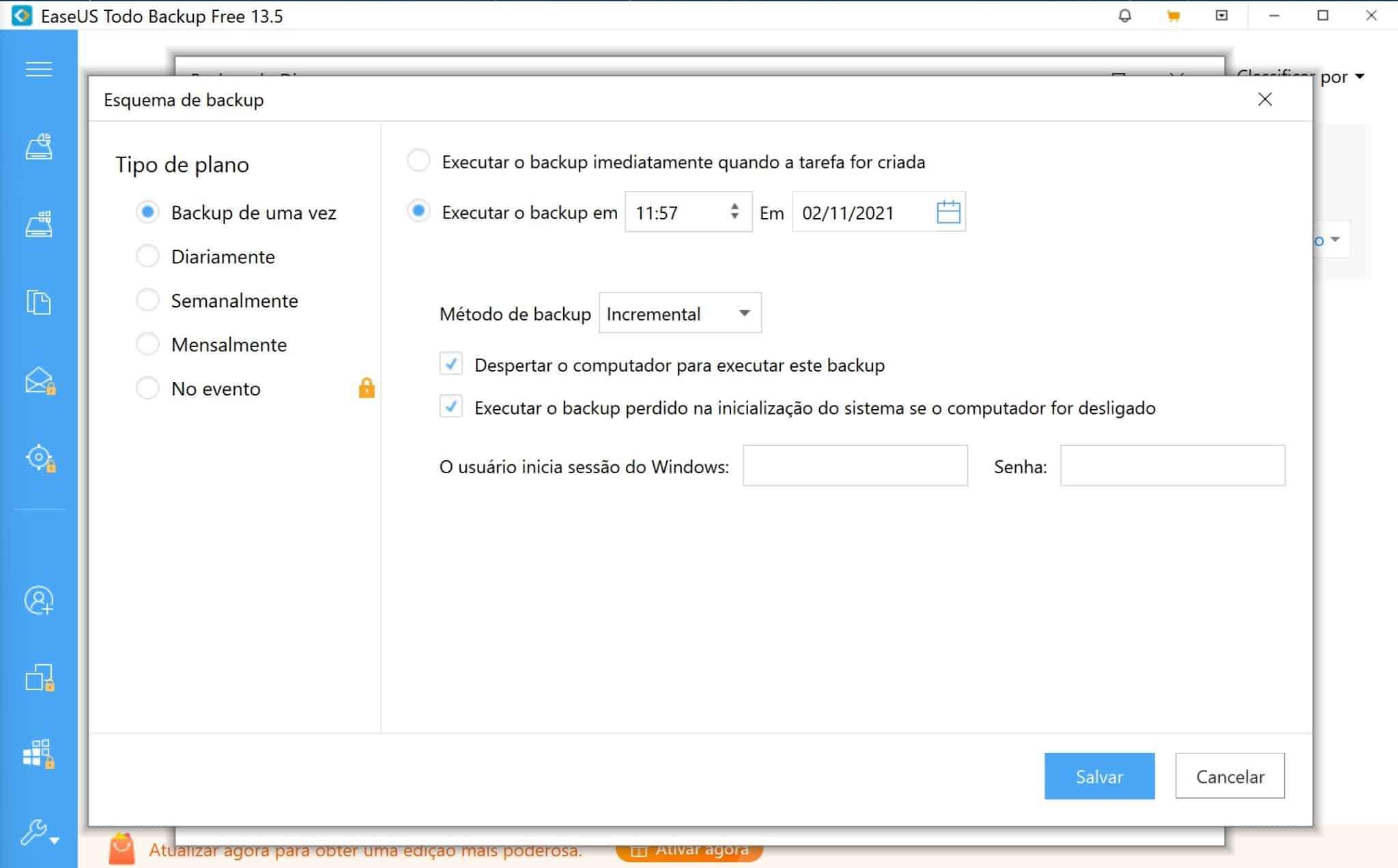 - Pode ainda definir uma agenda para que o programa faça cópias de segurança automaticamente, com um clique em ‘Agenda’. Pode definir backups diários, semanais ou mensais.