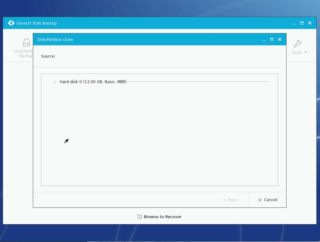 - Seleccione a o disco de origem e depois clique em ‘Next’.