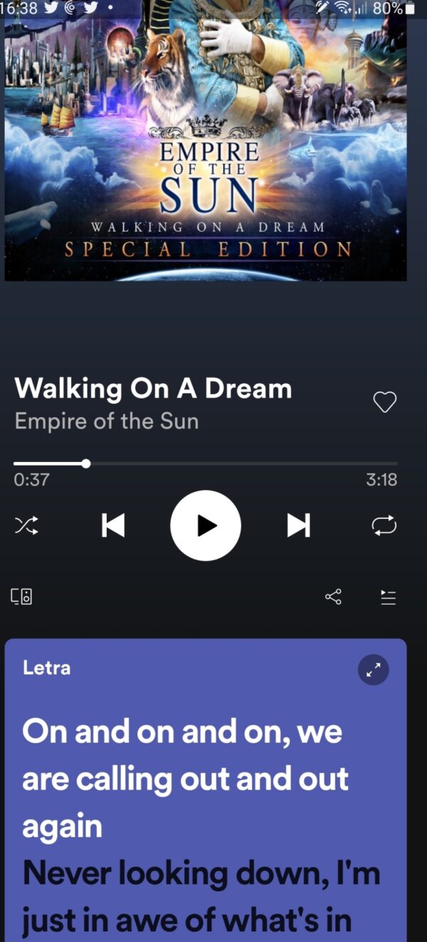 Aparecerá a letra da música enquanto a música está a reproduzir no Spotify.