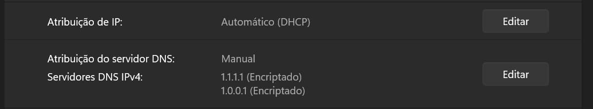 Clique em ‘Editar’, junto a ‘Atribuição do servidor DNS’.
