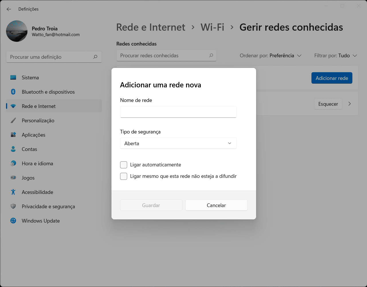 No Windows 11, pode guardar as configurações de acesso a redes sem fios conhecidas para facilitar as ligações. Também é possível apagar as que já não necessita.
