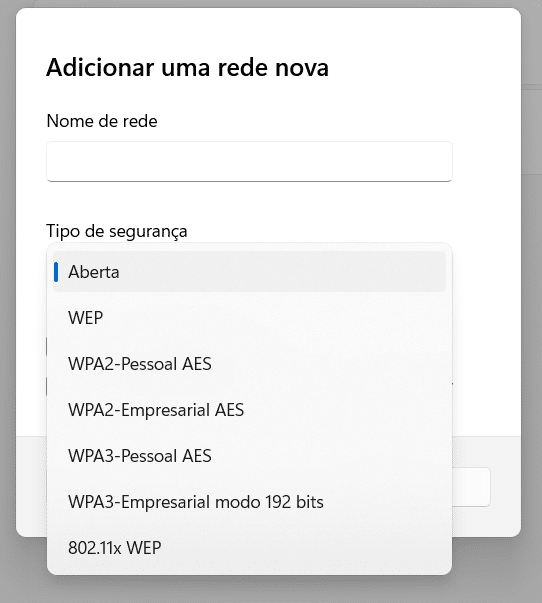Adicionar uma nova rede sem fios