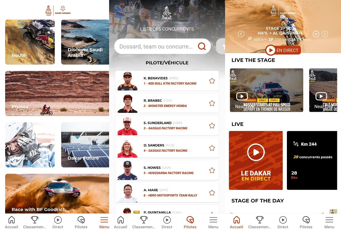 A aplicação permite ter acesso a detalhes das etapas, classificações, dados sobre os pilotos e equipas, vídeos e fotos e a todas as informações sobre a competição.