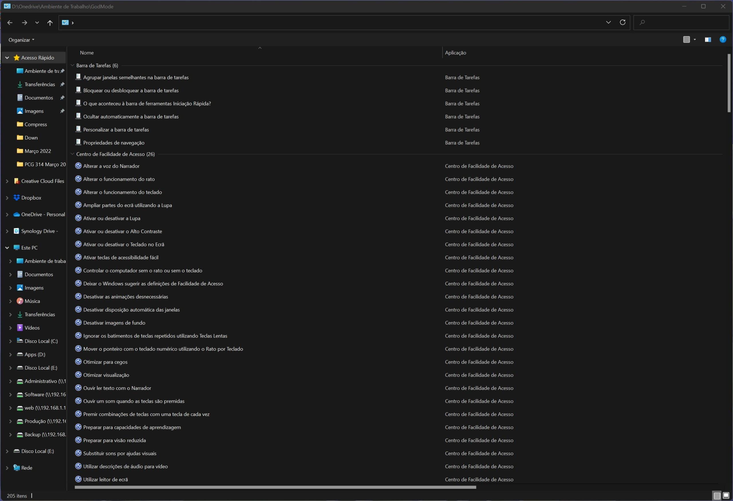 O God Mode é apenas uma forma de aceder mais rapidamente a todas as definições do Windows, que também podem ser alteradas através dos métodos normais (Definições e Painel de Controlo), mas também permite alterar algumas definições que não estão acessíveis por esses métodos, ou que são mais complicadas de encontrar.