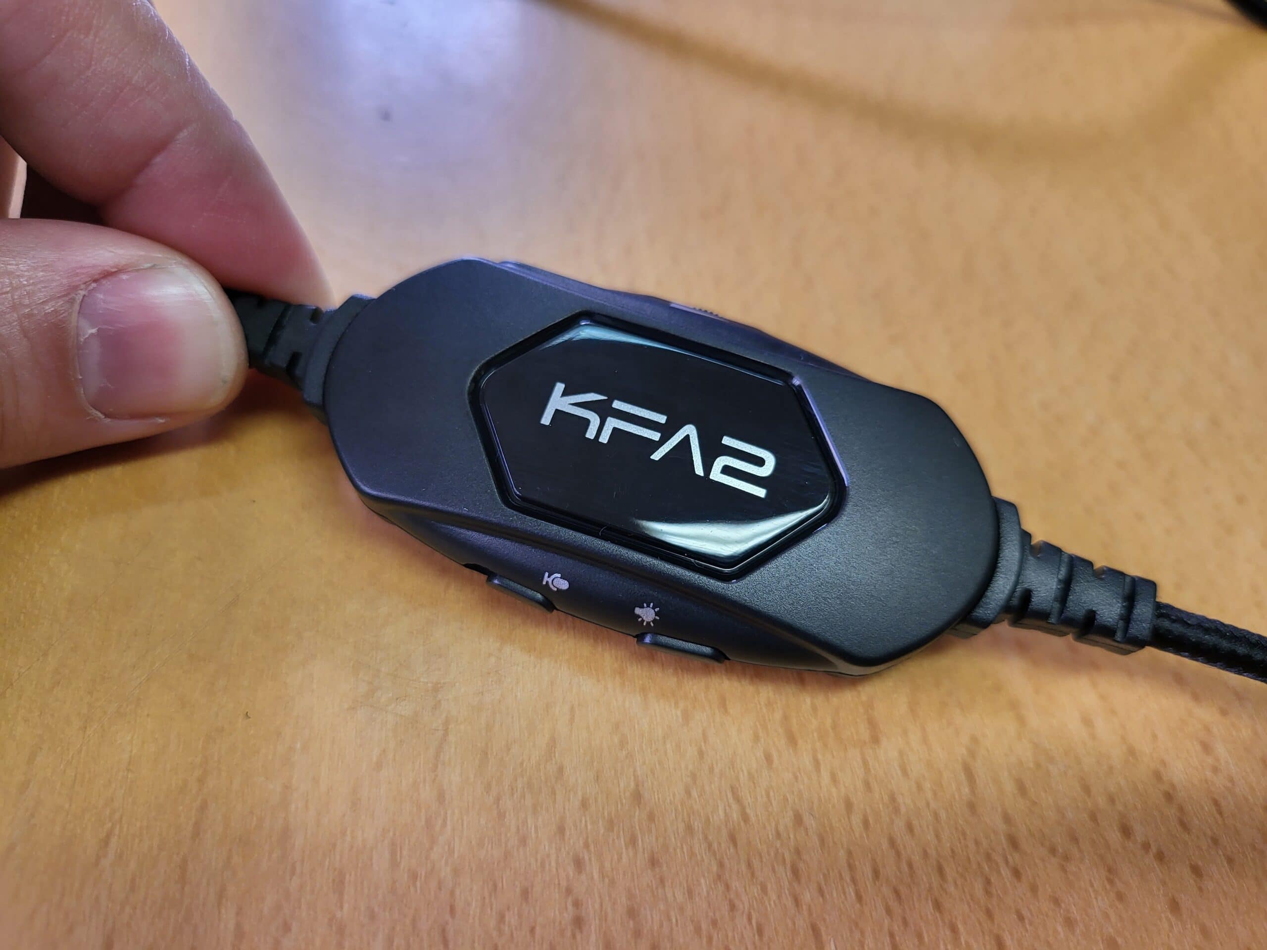 Este cabo tem 2.2 metros de comprimento e um acabamento em malha de tecido, para evitar os tradicionais emaranhados, estando ao meio do cabo presente o módulo de controlo, que permite regular o volume, ligar ou desligar o microfone, e ligar ou desligar a iluminação RGB dos auscultadores. Nesse mesmo módulo encontra-se uma ligação jack de 3.5 mm, onde deverá ligar o cabo fornecido, que por sua vez se ligará ao dispositivo que desejar, como um smartphone ou comando de uma consola de jogos.