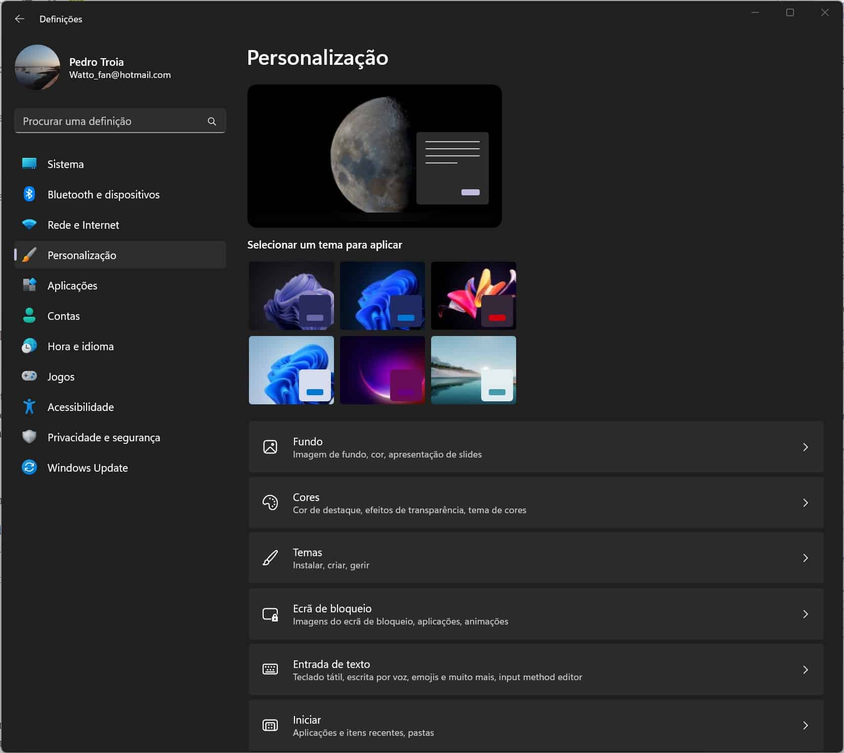 Na coluna da esquerda da janela das ‘Definições’, clique em ‘Personalização’.