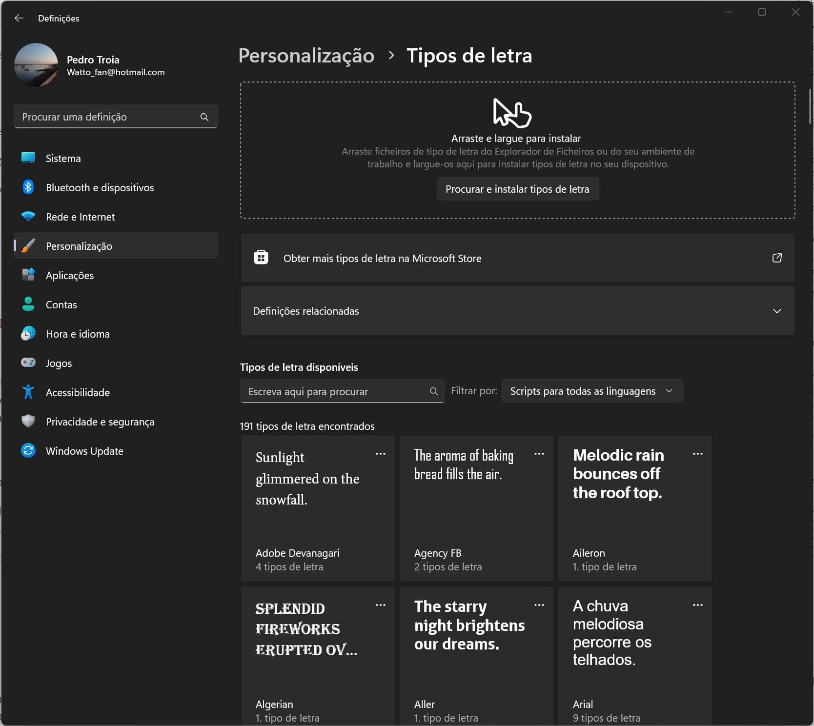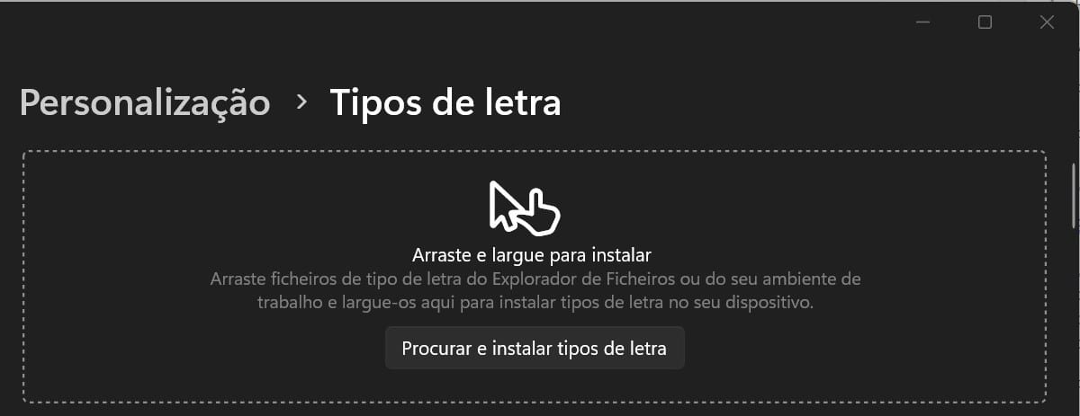 Em alternativa, pode arrastar o ficheiro para a janela ‘Tipos de letra’ das definições de personalização.