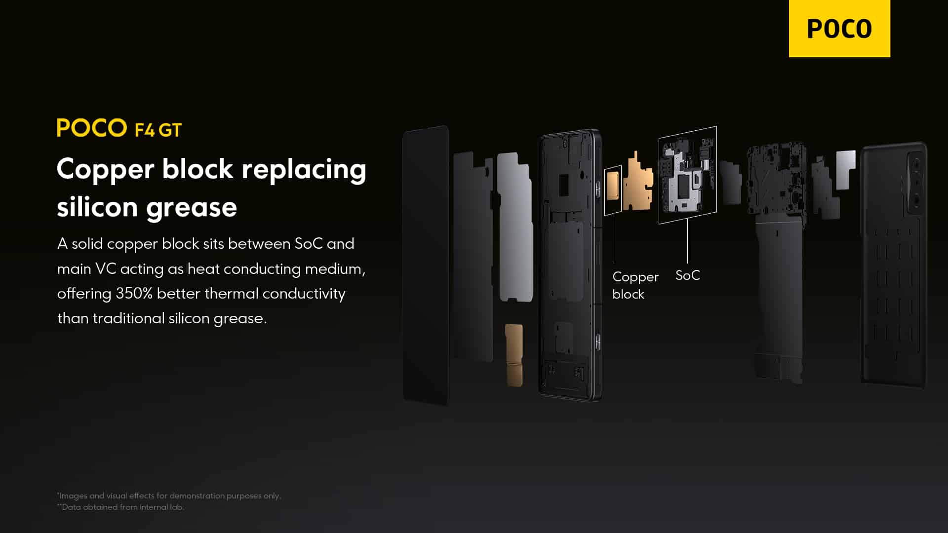 A este SoC, encontra-se presente 8 e 12 GB de memória RAM do tipo LPDDR5 (até 6400 Mbps), bem como de armazenamento do tipo UFS 3.1 com 128 e 256GB de capacidade. Para garantir um arrefecimento apropriado a todo este conjunto, a Poco aplicou a tecnologia Liquid Cooling 3.0, composta por várias soluções, como a separação do SoC dos controladores de carregamento da bateria, criando assim duas câmaras de vapor e bases em cobre para uma melhor transferência de calor.