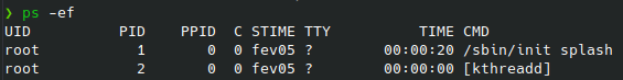 - Procurar por todos os processos no sistema num formato mais completo: ps -ef