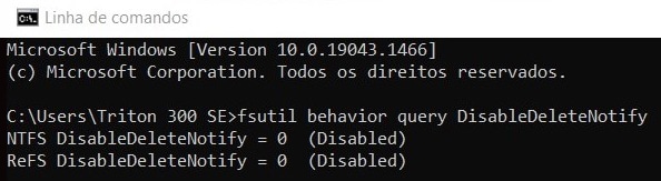 Escreva cmd na caixa de pesquisa do menu ‘Iniciar’ e clique em ‘Linha de comandos’. Quando a janela abrir, escreva fsutil behavior query DisableDeleteNotify e dê um ‘Enter’ Se o resultado for ‘= 0’, o Trim está activado; se for ‘= 1’, está desactivado. Se for esta a situação, use o comando fsutil behavior set DisableDeleteNotify 0.