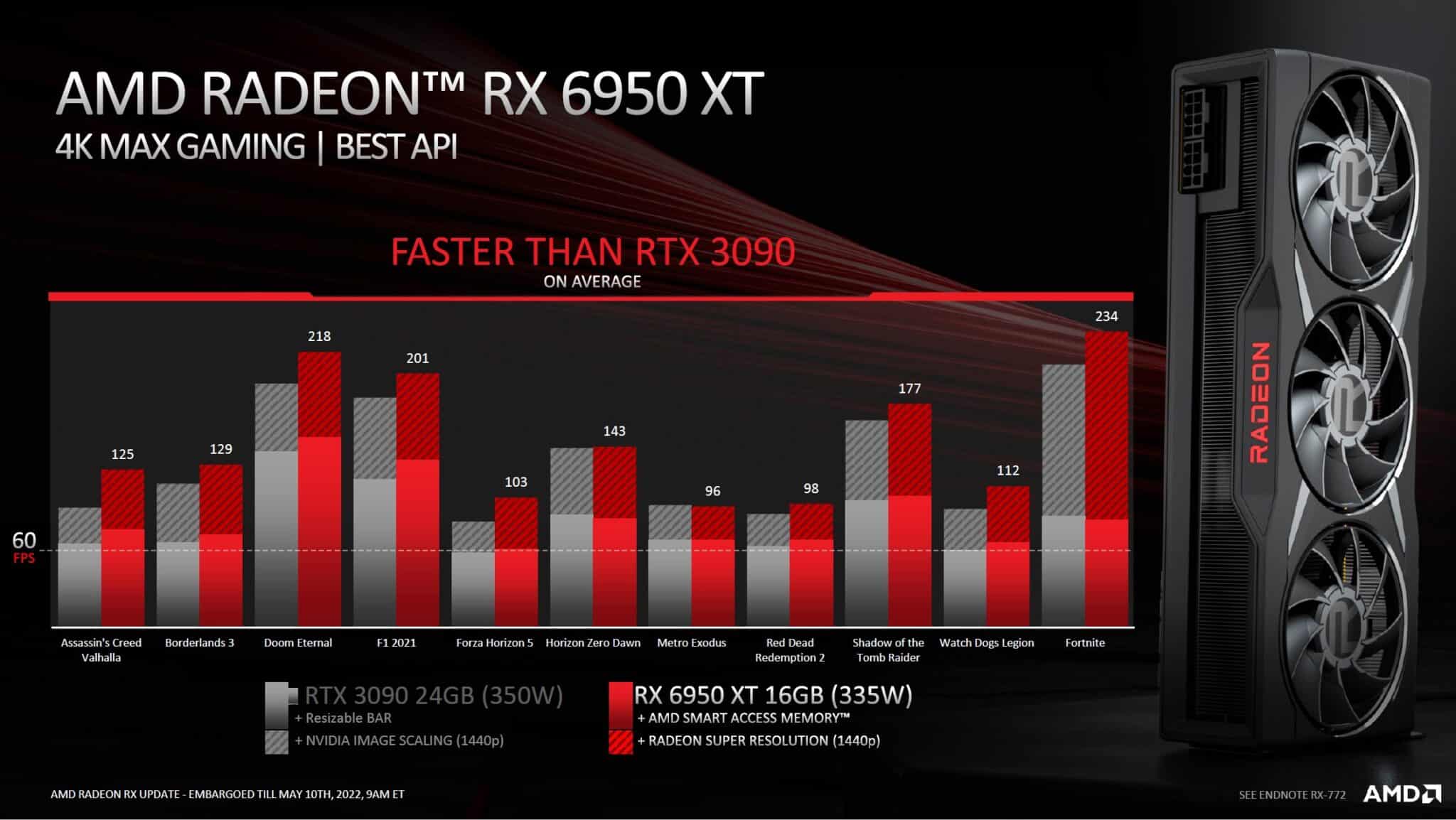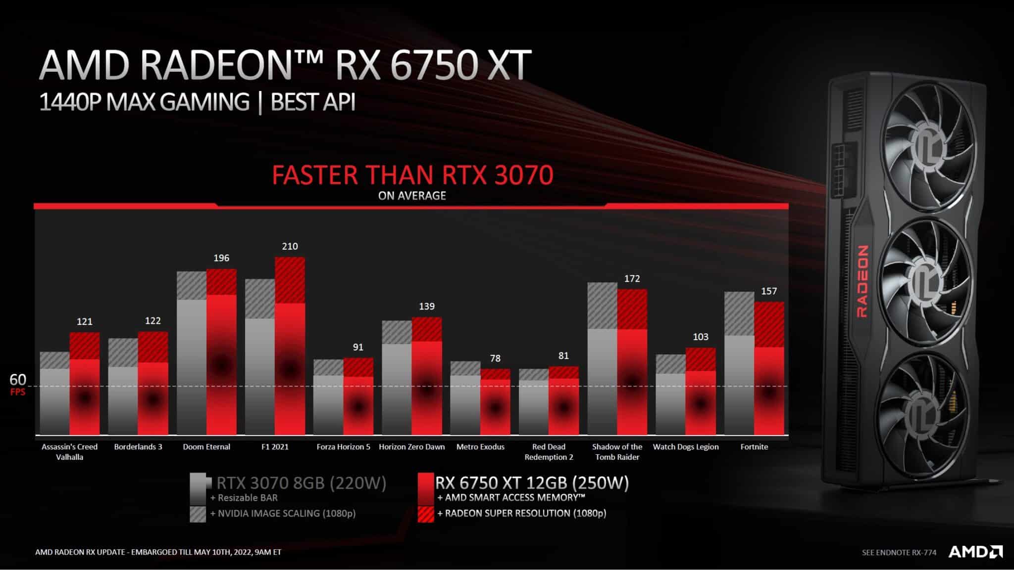 Segundo a AMD, estas novas placas, em conjunto com as restantes tecnologias da AMD como o Smart Access Memory (SAM) e o AMD FidelityFX, permite que estas placas consigam superar as suas rivais directas, mesmo quando estas utilizam tecnologias equivalentes, como a tecnologia Resizable BAR e o Nvidia Deep Learning Super Sampling (DLSS). As novas placas gráficas terão um PVP de 1099 dólares (1280 euros) para a Radeon RX 6950 XT, 549 dólares (639 euros) para a Radeon RX 6750 XT e 399 dólares (489 euros) para a Radeon RX 6650 XT.