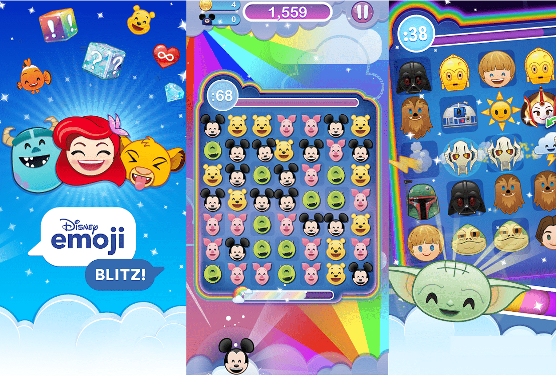 Disney Emoji Blitz Game é um jogo para combinar três peças especialmente concebido para os fãs dos personagens da Disney e Pixar que foi actualizado com a saga Star Wars e com emojis especiais.